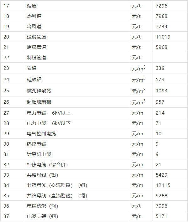 1000MW火電裝置性材料參考價格