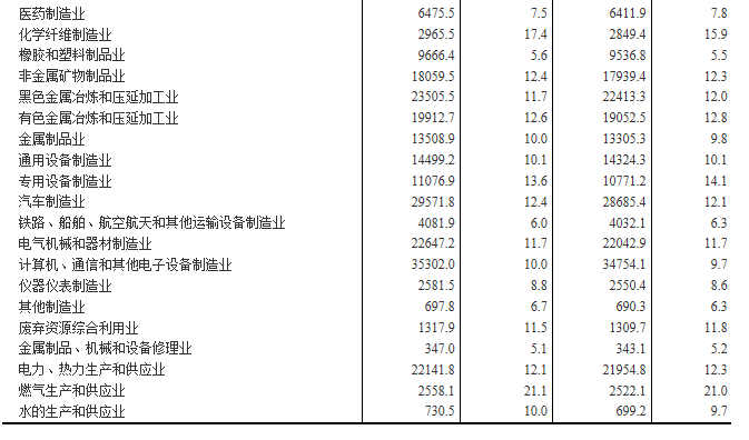 1-5月份,采礦業(yè)實(shí)現(xiàn)利潤(rùn)總額2333.6億元,同比增長(zhǎng)41.6%;制造業(yè)實(shí)現(xiàn)利潤(rùn)總額23150.1億元,增長(zhǎng)13.8%;電力、熱力、燃?xì)饧八a(chǎn)和供應(yīng)業(yè)實(shí)現(xiàn)利潤(rùn)總額1814.6億元,增長(zhǎng)26.1%。