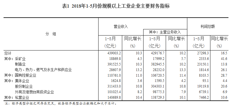 國(guó)家統(tǒng)計(jì)局6月27日發(fā)布的工業(yè)企業(yè)財(cái)務(wù)數(shù)據(jù)顯示,2018年1-5月份,全國(guó)規(guī)模以上工業(yè)企業(yè)利潤(rùn)同比增長(zhǎng)16.5%,增速比1-4月份加快1.5個(gè)百分點(diǎn);其中,5月份增長(zhǎng)21.1%,比4月份增速減緩0.8個(gè)百分點(diǎn),延續(xù)了快速增長(zhǎng)的勢(shì)頭。