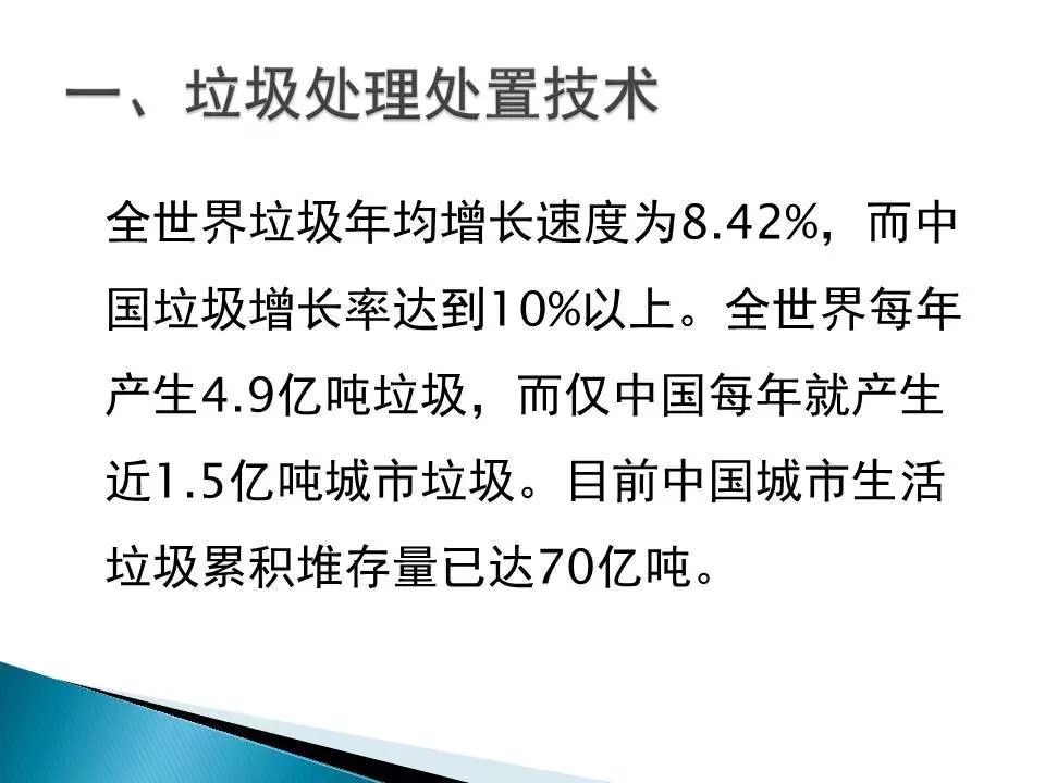 全世界垃圾年均增長速度為8 42%,而中國垃圾增長率達到10%以上。全世界每年產(chǎn)生4 9億噸垃圾,而僅中國每年就產(chǎn)生近1 5億噸城市垃圾。目前中