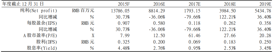 盈利預(yù)測:預(yù)計(jì)公司 18/19 年分別實(shí)現(xiàn)凈利潤 39.85 億元(YOY+122%)、 54.35 億元(YOY+36%),EPS0.262、0.358 元,當(dāng)前 A 股對應(yīng) 18、19 年動態(tài) PE 27.6X、20X,H 股 18X、14X,給予 A 股和 H 股“買入”建議。