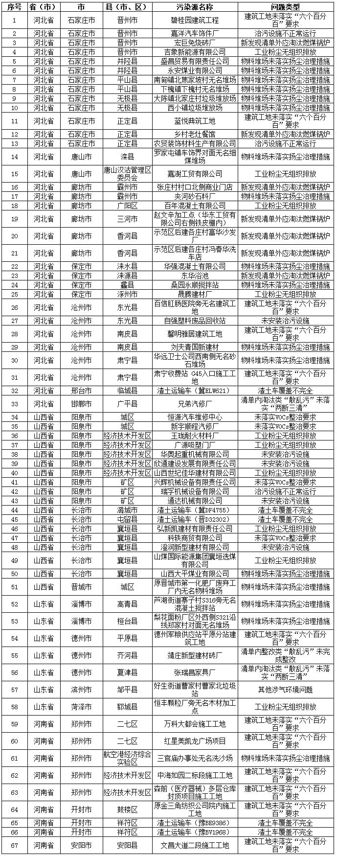 7月18日,2018-2019年藍(lán)天保衛(wèi)戰(zhàn)重點(diǎn)區(qū)域強(qiáng)化督查工作繼續(xù)開(kāi)展,200個(gè)督查組按照工作方案要求,對(duì)京津冀及周邊地區(qū)147個(gè)縣(市、區(qū))進(jìn)行督查,發(fā)現(xiàn)涉氣環(huán)境問(wèn)題67個(gè)(見(jiàn)附件)如下: