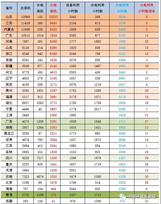 ?綜合各省火電裝機(jī)排名以及火電利用小時排名情況,做出以下判斷: