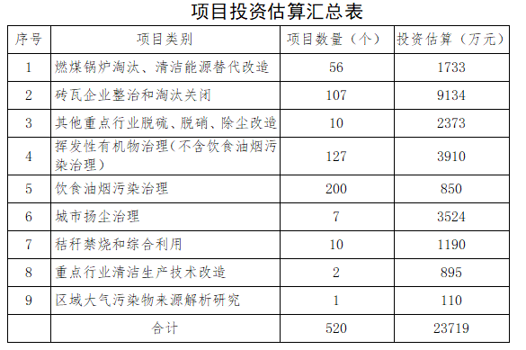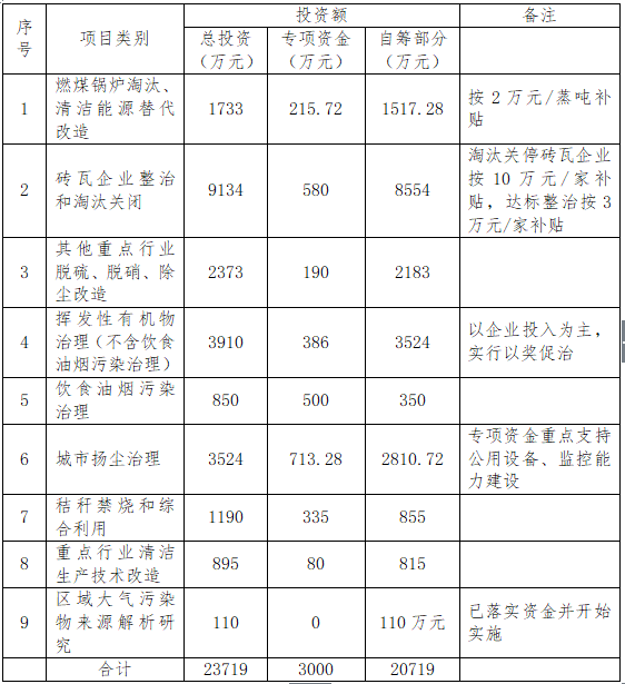 2.資金籌措。2018年項目投資估算合計:23719萬元,省級大氣污染防治專項資金3000萬元,地方配套和企業(yè)自籌20719萬元。