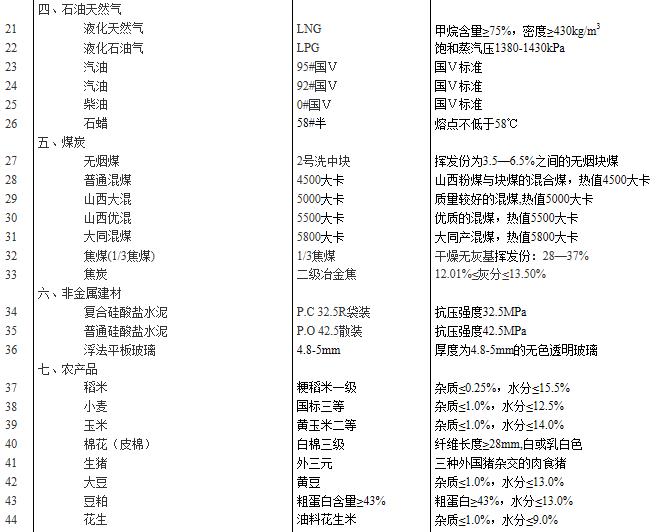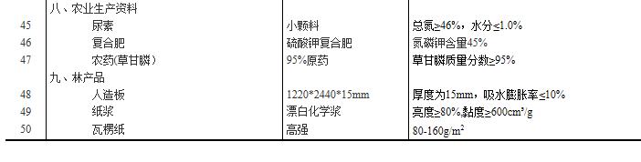 附表:流通領(lǐng)域重要生產(chǎn)資料市場價格監(jiān)測產(chǎn)品規(guī)格說明表