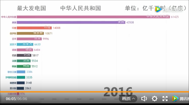 據(jù)統(tǒng)計(jì),去年全球的發(fā)電總量達(dá)到255512.8億千瓦時(shí),其中中國發(fā)電量為64951.4億千瓦時(shí),獨(dú)占全球發(fā)電量的四分之一,發(fā)電量位居世界第一,相當(dāng)于美國、俄羅斯、日本這三個(gè)國家的發(fā)電量之和。