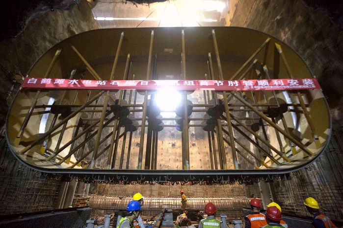 白鶴灘水電站工程右岸地下廠房完成首節(jié)機組肘管吊裝