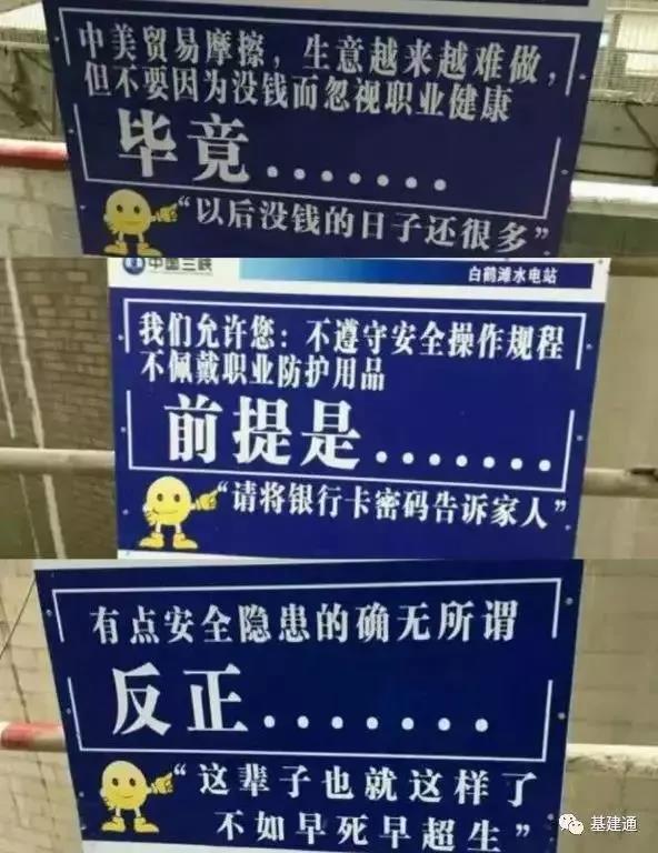 不管做什么,安全第一,而水電八局在白鶴灘水電站建設(shè)現(xiàn)場連施工安全標(biāo)語都與眾不同,通哥收集了部分標(biāo)語供各位基友“感慨”,通哥看了這些標(biāo)語,感慨超級工程的同時,也默默地為建設(shè)者們豎起了大拇指,你們真不容易,辛苦了!