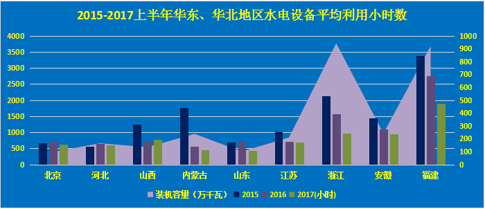 從水電設(shè)備平局利用小時數(shù)上看,今年上半年,華東、華北區(qū)域各省水電設(shè)備平均利用小時數(shù)普遍處于下滑區(qū)間,福建、浙江、山東、江蘇低于去年同期849小時、604小時、304小時、25小時。僅有山西省有部分上漲,高于去年同期49小時。