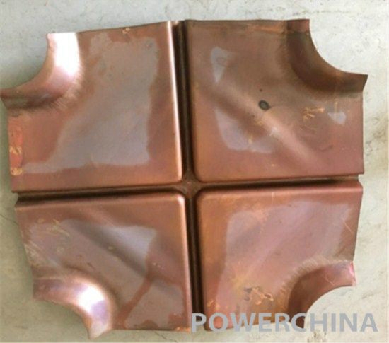 白鶴灘水電站水墊塘工程結(jié)構(gòu)混凝土采用15m×15m分塊澆筑,中間設(shè)置縱橫向結(jié)構(gòu)分縫,結(jié)構(gòu)縫之間布置2道1.2mm厚(“十字”或“丁字”)銅止水進(jìn)行連接,整個(gè)水墊塘工程結(jié)構(gòu)混凝土共需定型銅止水接頭950個(gè)。