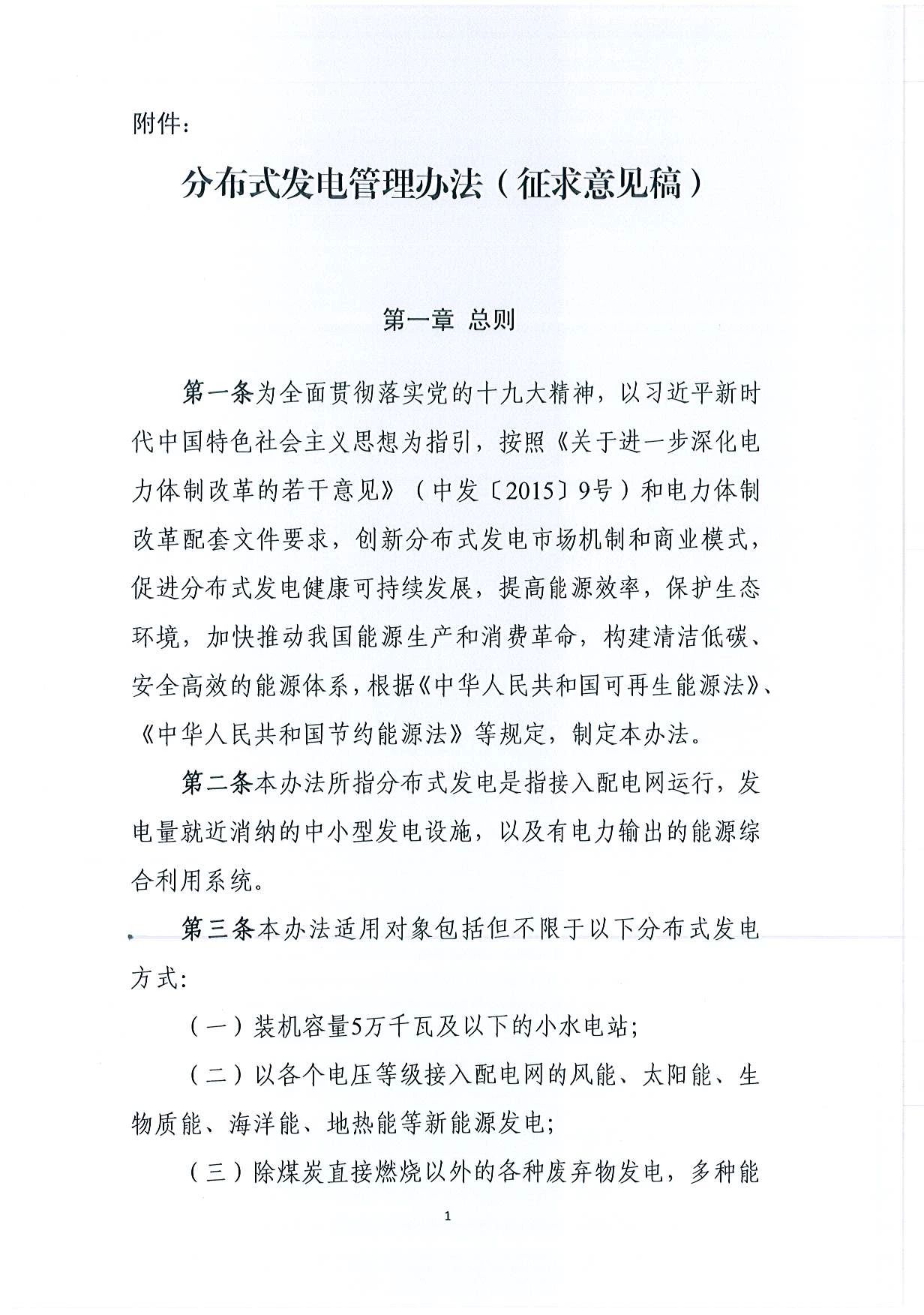 《分布式發(fā)電管理辦法(征求意見稿)》下發(fā) 鼓勵企業(yè)等投資建設并經(jīng)營項目適用范圍包括小水電站國家能源局綜合司3月20日下發(fā)《分布式發(fā)電