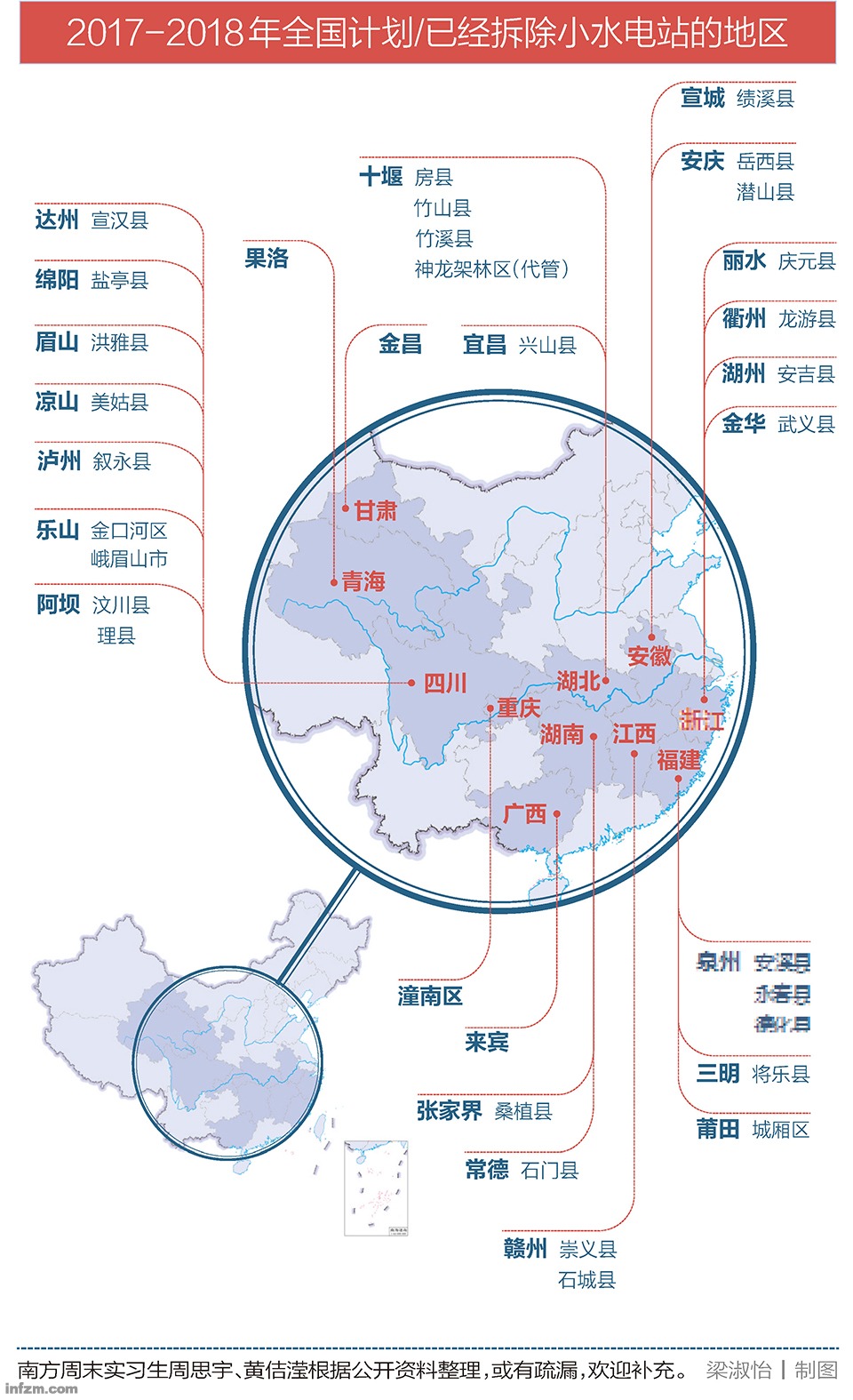不只是長(zhǎng)江經(jīng)濟(jì)帶,自中央環(huán)保督察起,甘肅祁連山、福建、青海、廣西……2017-2018年,據(jù)南方周末記者不完全統(tǒng)計(jì),目前全國(guó)已有11省份34個(gè)市縣正在對(duì)小水電關(guān)停、整頓,有的一個(gè)縣就關(guān)停了幾十座。