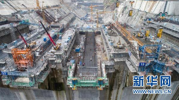 這是7月11日無人機(jī)拍攝的白鶴灘水電站建設(shè)工地。新華社記者 胡超 攝