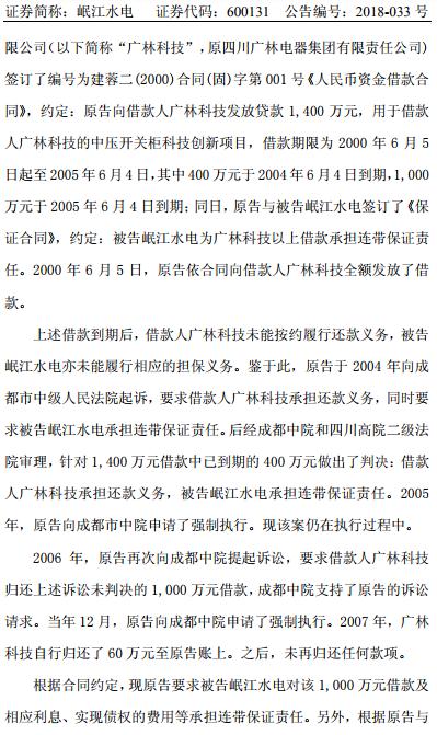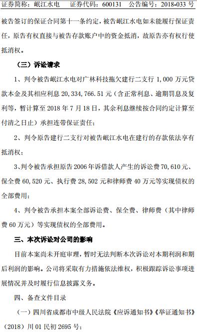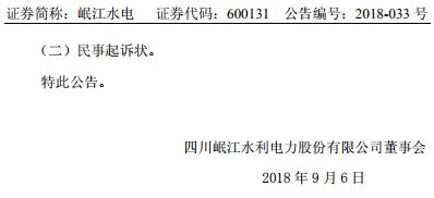 涉資3100 萬元!岷江水電涉及訴訟公告