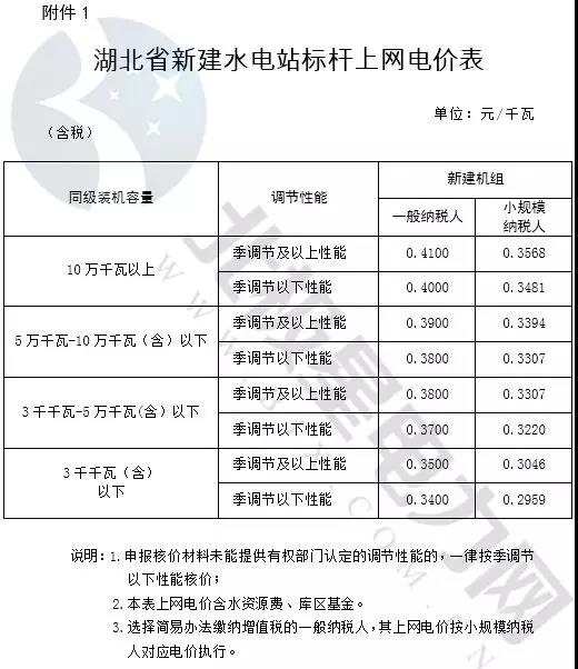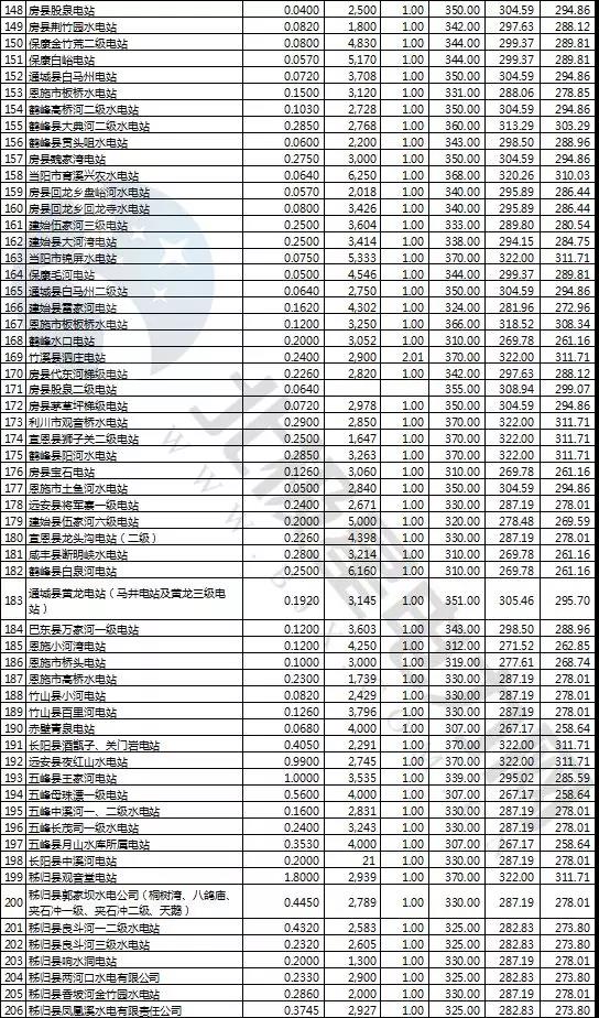 1.湖北省新建水電站標(biāo)桿上網(wǎng)電價(jià)表