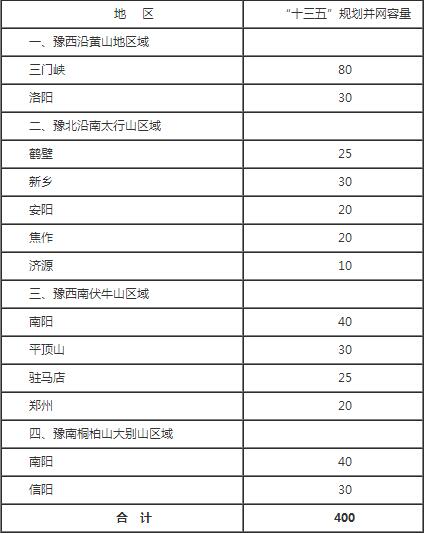 “十三五”時(shí)期,全省規(guī)劃建設(shè)豫西、豫北、豫西南、豫南等地區(qū)四個(gè)百萬千瓦級(jí)風(fēng)電基地,到2020年建成并網(wǎng)裝機(jī)規(guī)模400萬千瓦左右。