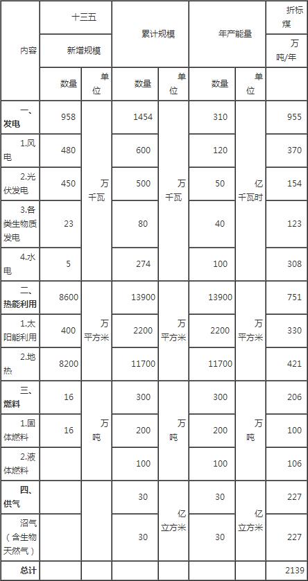 表2 “十三五”時(shí)期可再生能源開發(fā)利用主要指標(biāo)