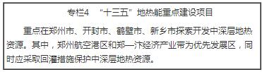 加大地?zé)崮荛_發(fā)利用研究,完善地?zé)崮荛_發(fā)利用相關(guān)標(biāo)準(zhǔn)、政策、價格等行業(yè)管理體系。以“地?zé)崴h(huán)利用”為指導(dǎo)原則,積極推進(jìn)水熱型地?zé)峁┡?,進(jìn)行傳統(tǒng)供暖區(qū)域的清潔能源供暖替代,將水熱型地?zé)崮芄┡{入城鎮(zhèn)基礎(chǔ)設(shè)施建設(shè)中,集中規(guī)劃,統(tǒng)一開發(fā)。按照“因地制宜,集約開發(fā),加強(qiáng)監(jiān)管,注重環(huán)保”的原則,除城鎮(zhèn)地下空間利用規(guī)劃的區(qū)域外,在公共建筑和新建住宅小區(qū)等區(qū)域鼓勵開發(fā)利用淺層地?zé)崮?。通過技術(shù)進(jìn)步、規(guī)范管理解決目前淺層地?zé)崮荛_發(fā)中出現(xiàn)的問題。結(jié)合大氣污染治理,重點(diǎn)在鄭州、開封、鶴壁、新鄉(xiāng)等清潔供暖試點(diǎn)城市探索開展地?zé)崮馨l(fā)電示范項目。到2020年,新增地?zé)崮芄┡娣e8200萬平方米。