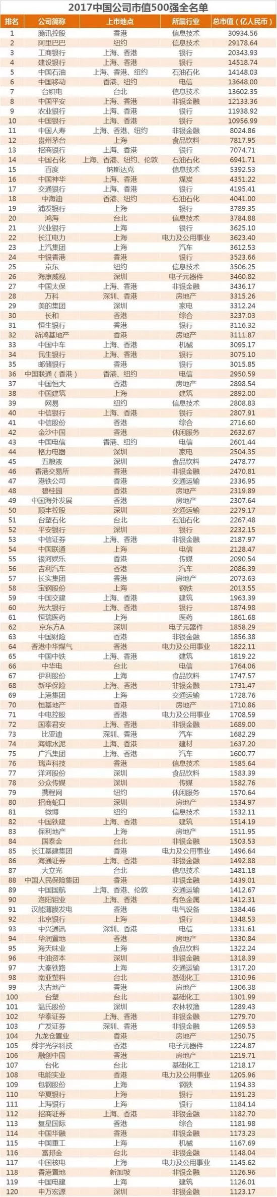 值得注意的是,在美國上市的500強雖然只有31家,但總市值超過深圳上市的500強,其中阿里貢獻了26.83%的市值。