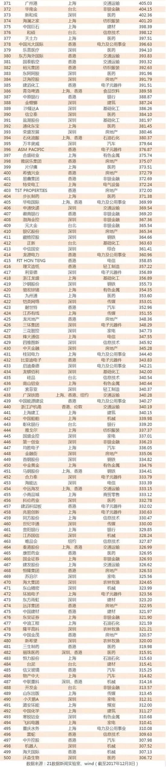 不過,香港聯(lián)交所上市的500強貢獻了最多的市值,這是因為大多高市值巨頭為AH股,且伴隨港股今年連創(chuàng)新高,在港交所上市的500強數(shù)量和市值也水漲船高。