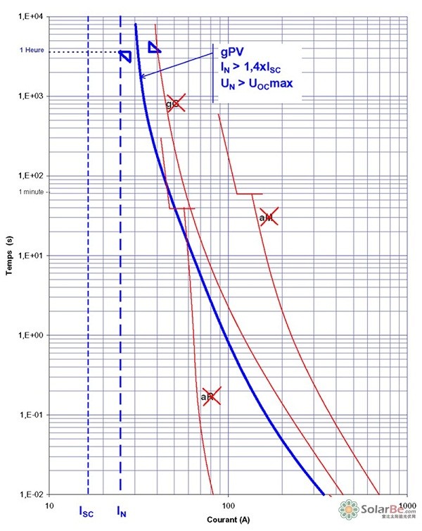 圖3 gPV級熔斷器與其他類型熔斷器時間-電流曲線的區(qū)別