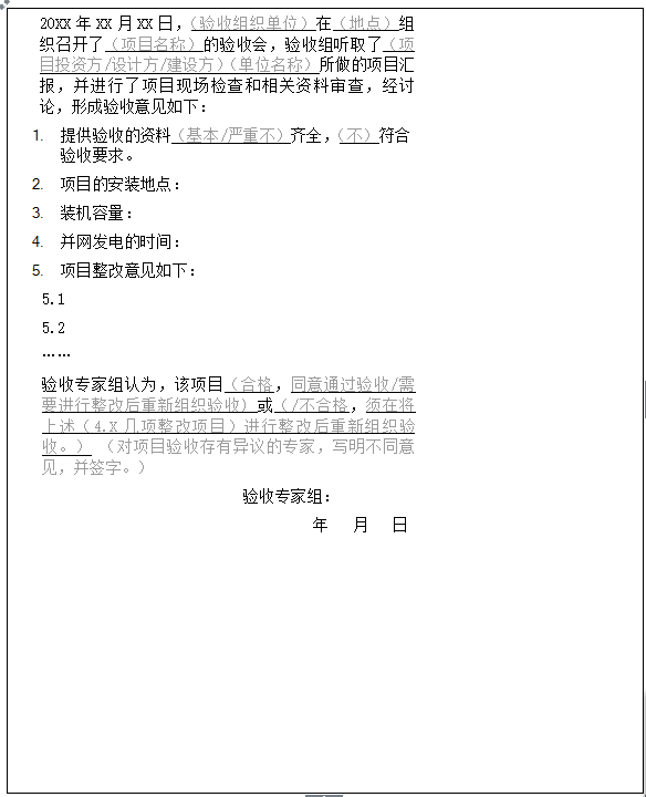 表2 項目驗收意見模板
