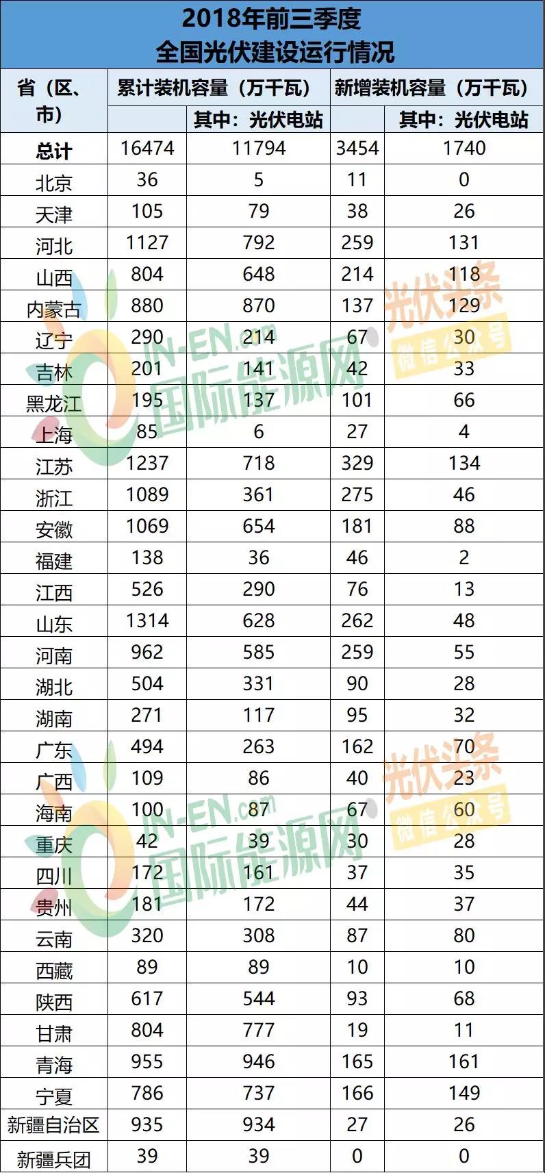 今(11月19日),國家能源局公布2018年前三季度光伏建設運行情況。