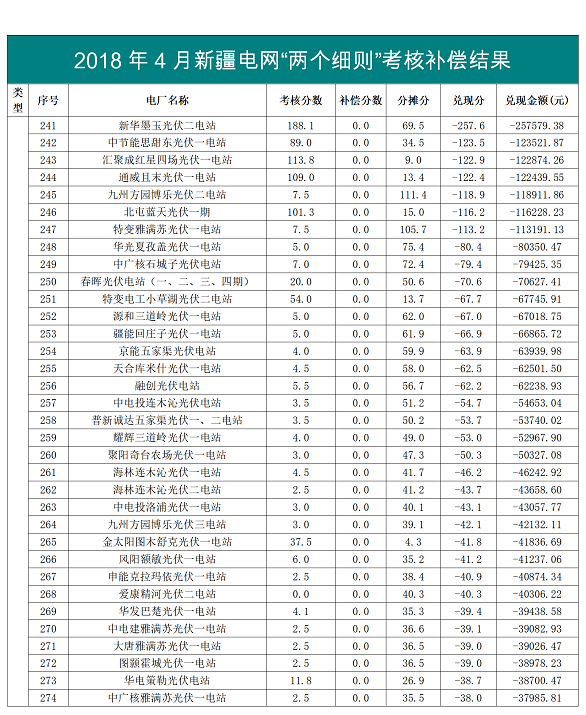 日前,國家能源局新疆監(jiān)管辦公布了2018年3月和4月新疆電網(wǎng)兩個細則考核補償結果,具體信息見下表: