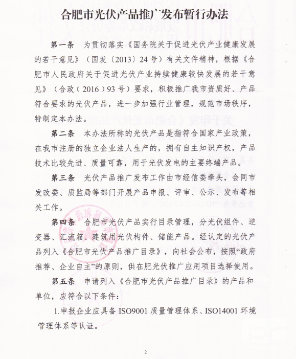 關于印發(fā)《合肥市光伏產(chǎn)品推廣發(fā)布暫行辦法》的通知