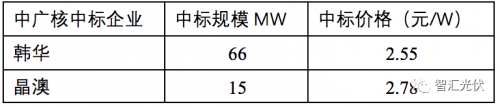 表4:中廣核德令哈80MW組件中標情況