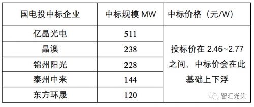 表3:國電投1241MW組件中標情況