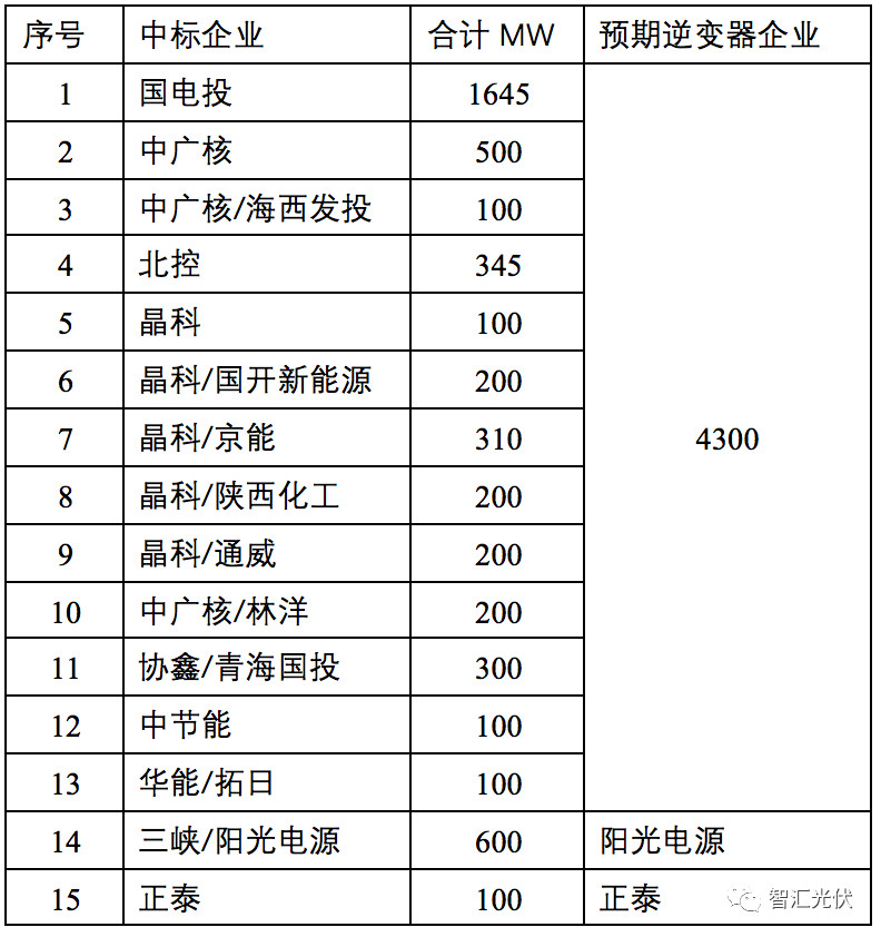 表7:中廣核德令哈80MW應用領(lǐng)跑者逆變器中標情況