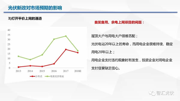 自發(fā)自用、余電上網(wǎng):10GW的規(guī)模指標(biāo),531之后并網(wǎng)無國家補貼(地方政府想辦法?),要參與競價