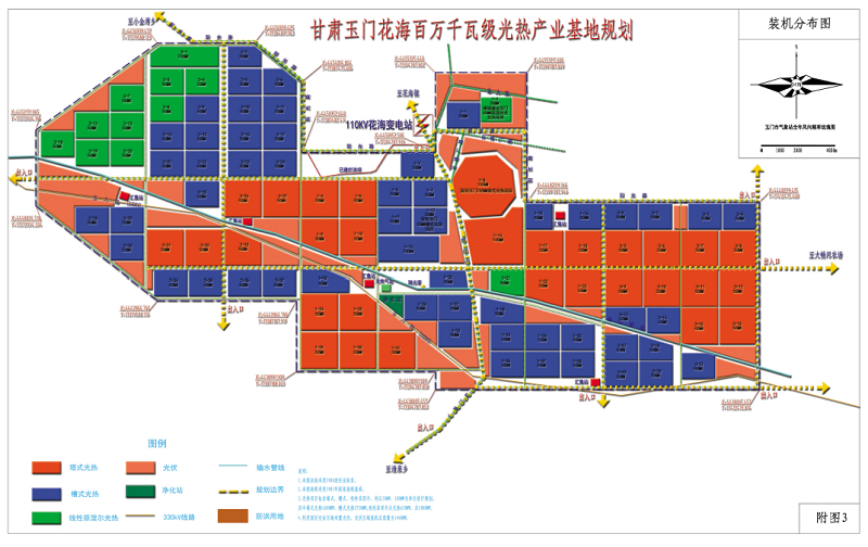 據(jù)規(guī)劃布局圖(見附件),目前已落戶該園區(qū)的包括國華電力玉門100MW熔鹽塔式電站、博成通達(dá)50MW菲涅爾光熱電站、金釩50MW槽式電站項(xiàng)目。其中國華電力項(xiàng)目為首批國家光熱示范項(xiàng)目之一,玉門獲批的另外三個(gè)示范項(xiàng)目均不在該園區(qū)規(guī)劃內(nèi)。
