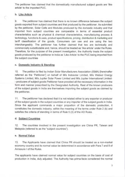 原件曝光!印度開(kāi)打光伏貿(mào)易戰(zhàn),對(duì)中國(guó)、臺(tái)灣、馬拉西亞電池和組件啟動(dòng)反傾銷調(diào)查
