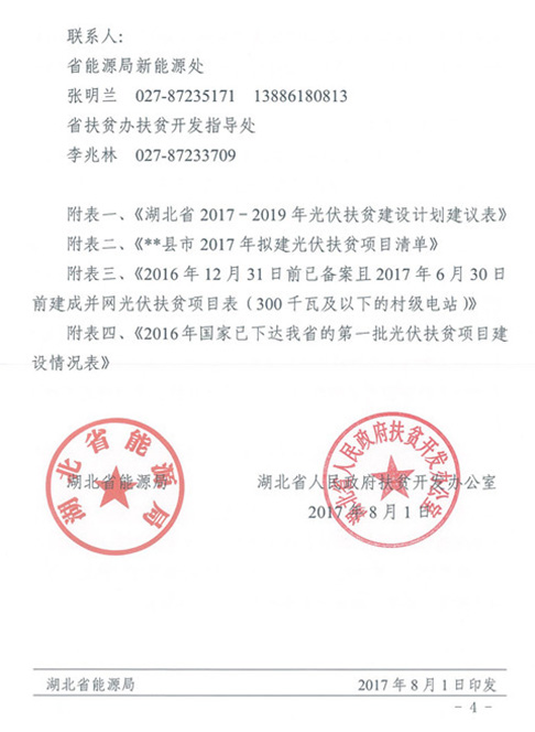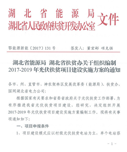 湖北省能源局、扶貧辦關(guān)于組織編制2017-2019年光伏扶貧項(xiàng)目建設(shè)實(shí)施方案的通知
