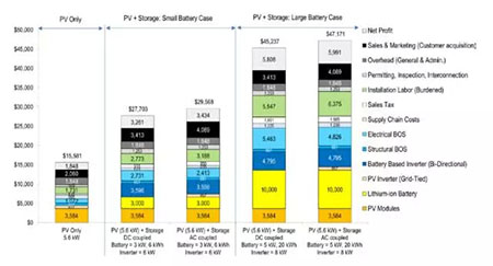 圖1:住宅太陽能光伏+儲能系統(tǒng),小型電池案例的總安裝成本和價格構成模型(2016年美元現(xiàn)價)