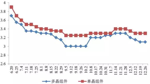 近日,不少業(yè)內(nèi)朋友經(jīng)常和兔子君提到,怎么今年過了630,組件的價(jià)格卻遲遲沒有降價(jià)呢?其實(shí)可能很多朋友已經(jīng)關(guān)注到這一點(diǎn)了,所以兔子君特意找出了去年630之后組件的價(jià)格走勢(shì)。