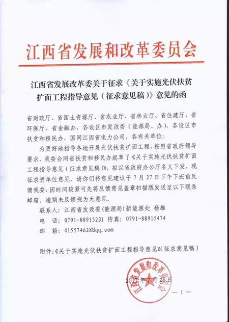 江西發(fā)改委關(guān)于實(shí)施光伏扶貧擴(kuò)面工程的指導(dǎo)意見(jiàn)的通知(征求建議稿)