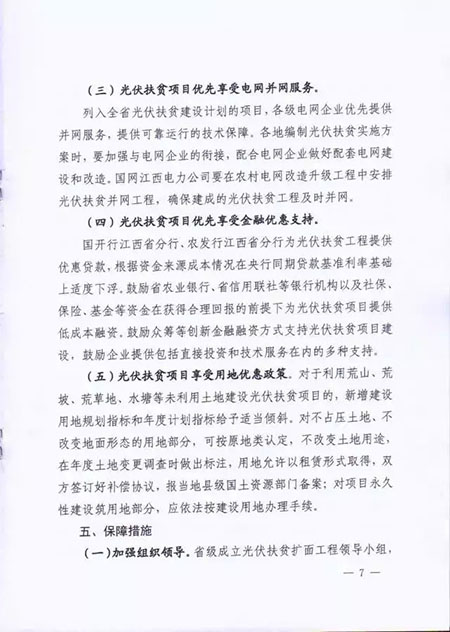 近日,江西省發(fā)改委印發(fā)《關(guān)于實(shí)施光伏扶貧擴(kuò)面工程的指導(dǎo)意見(jiàn)(征求建議稿)》意見(jiàn)的函,意見(jiàn)明確指出加大光伏扶貧多項(xiàng)優(yōu)先支持政策。原文如下: