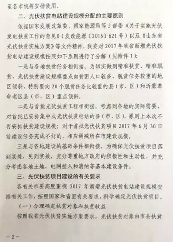 山東:發(fā)布《關(guān)于做好我省2017年光伏電站建設(shè)規(guī)模安排工作的通知》