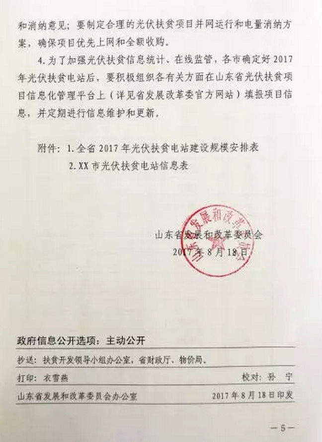 山東省2017年500MW光伏電站指標(biāo)分配方案