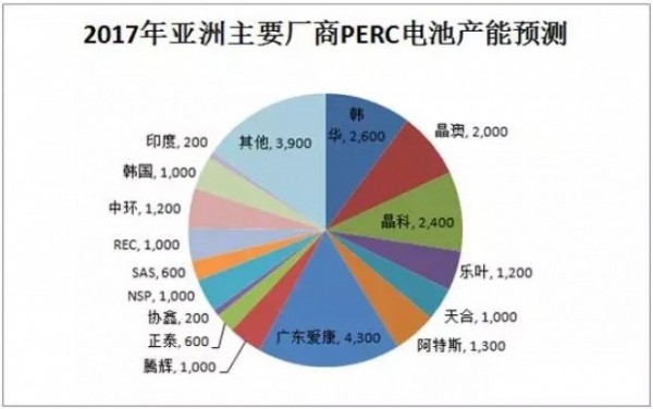 PERC技術(shù)在2014年開(kāi)始成熟,2015-2016年迎來(lái)了產(chǎn)能的暴發(fā)增長(zhǎng)期,一線廠商如晶科、晶澳、天合、阿特斯、協(xié)鑫、隆基樂(lè)葉、廣東愛(ài)康、韓華Q CELLS、REC等均在積極擴(kuò)產(chǎn)。據(jù)亞化咨詢統(tǒng)計(jì),2016年全球PERC電池產(chǎn)能已達(dá)15GW,2017年全球PERC電池產(chǎn)能將達(dá)30GW。隨著PERC產(chǎn)線設(shè)備的持續(xù)完善和國(guó)產(chǎn)化,以及適用于PERC工藝的導(dǎo)電漿料和金屬化技術(shù)的成熟,PERC電池產(chǎn)業(yè)化將迎來(lái)高峰期。