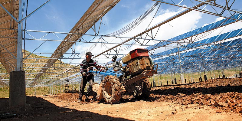 其達(dá)吉村貧困戶在光伏電站內(nèi)耕地。王國(guó)棟 攝