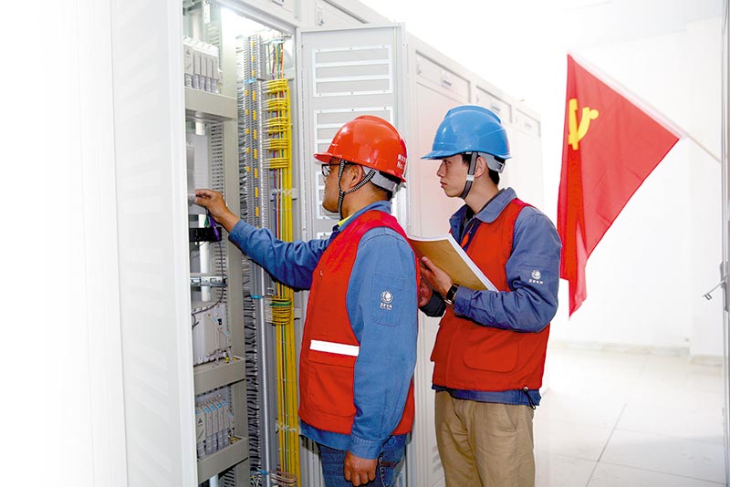 6月29日,黃化供電公司抽調(diào)技術(shù)人員幫助光伏企業(yè)做投運(yùn)前的最后檢查 王國(guó)棟 攝