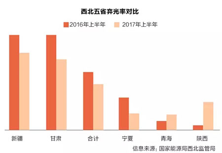 棄光率:西北地區(qū)情況好轉(zhuǎn)明顯。在有關(guān)部門對(duì)棄光地區(qū)裝機(jī)規(guī)模的嚴(yán)格控制,以及電網(wǎng)公司的積極推動(dòng)之下,與2016年相比,中國(guó)三北地區(qū)的棄光情況已有所改善。數(shù)據(jù)顯示,西北五省的棄光率同比下降4.2個(gè)百分點(diǎn),其中新疆、甘肅、寧夏等地的情況都有明顯好轉(zhuǎn)。值得注意的是,盡管國(guó)家電網(wǎng)公司對(duì)各個(gè)省公司已經(jīng)下達(dá)了硬性的新能源消納指標(biāo),并將其納入了績(jī)效考核,但除了國(guó)家電網(wǎng)之外,目前中國(guó)還存在著不少當(dāng)?shù)氐碾娋W(wǎng)企業(yè),由于這些企業(yè)由地方政府管理,因此并不受相關(guān)的績(jī)效考核約束。以陜西省為例,該省可再生能源消納比例位居全國(guó)倒數(shù)第一,盡管西北電網(wǎng)架結(jié)構(gòu)相對(duì)較好,但由于該省下屬的陜西地電對(duì)地方煤電有保護(hù)傾向,結(jié)果直接導(dǎo)致陜西省的棄光率從2016年的1.7%直接上升到2017年上半年的9.7%。