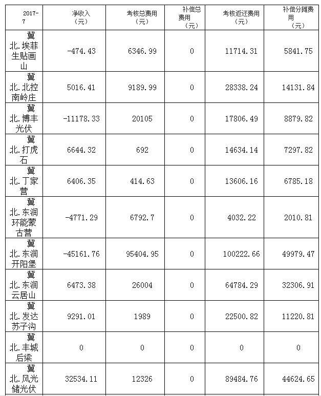 2017年7月京津唐光伏發(fā)電站并網運行結算匯總表