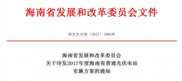 8月29日,海南省發(fā)改委印發(fā)的《2017年度海南普通光伏電站實(shí)施方案的通知》明確,暫停利用水庫(kù)、海面、河面、一般農(nóng)用地建設(shè)光伏發(fā)電項(xiàng)目(既有工廠化生產(chǎn)農(nóng)業(yè)大棚頂、既有標(biāo)準(zhǔn)化養(yǎng)殖魚塘類項(xiàng)除外)。