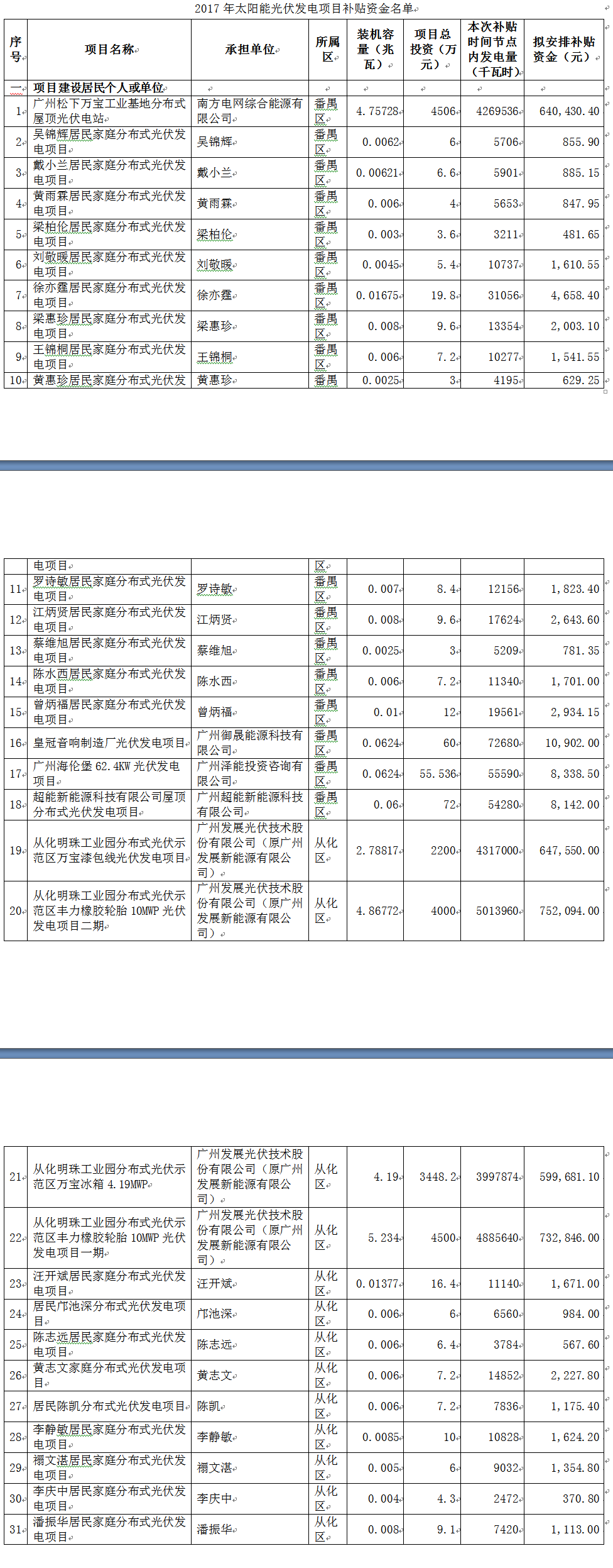 廣州2017年光伏發(fā)電項目補貼資金名單