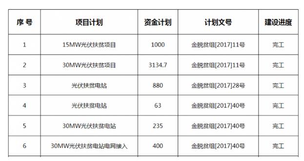 另?yè)?jù)北極星太陽(yáng)能光伏網(wǎng)從安徽省金寨縣政府網(wǎng)了解,金寨縣多項(xiàng)光伏扶貧項(xiàng)目備案、完工,詳情如下: